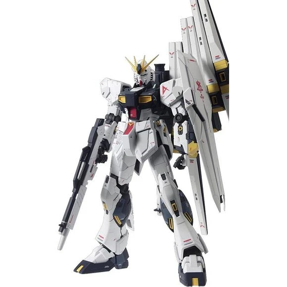 This modern version of the Nu Gundam has been designed by esteemed mechanical designer Hajime Katoki as part of the G-Dome at the Gundam Front Tokyo exhibit. Featuring new modeling technology refined since the original MG Nu Gundam release, this Ver. Ka incorporates new gimmics such as foldable tabs on weapons to allow for better gripping and a head with light up eyes using an LED (sold separately). Hands on this release feature a new refined articulated finger system used on the larger scale Perfect Grade series allowing expressive hand and individual finger movement. This release includes all of Nu Gundam’s weapons including large and small beam saber, beam rifle, hyper bazooka, weapon shield, and 6 fully deployable Fin Funnels. A custom stand in the shape of Amuro’s insignia is included as well as holders to display the fin funnels deployed.
