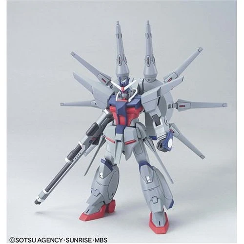 One of the more overdone designs in Gundam! This HG kit of the Legend Gundam comes with the clear blue “trails” leading from the whopping big Dragoon Unit. All the parts are molded in colour and snap together for ease in assembly. No base is included, though you can mount the finished model on the bases that have been included in previous HG kits.