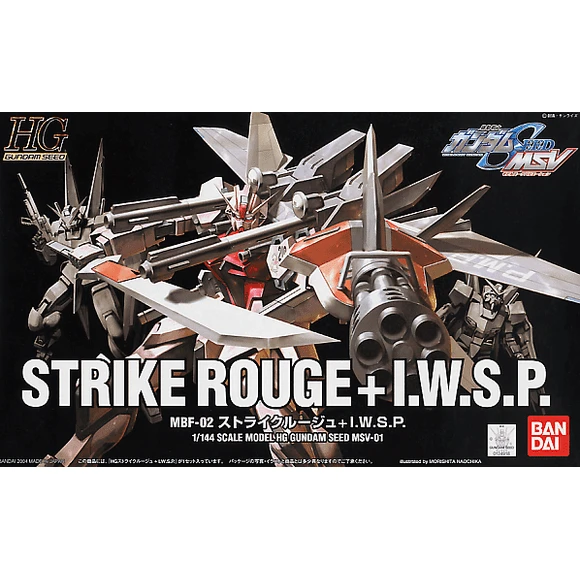 The Strike Rouge IWSP is an MSV from Gundam Seed designed to test a highly experimental weapons pack. Includes overhead cannons, beam rifle, gatling shield, beam saber, and 2 side mounted swords. The Strike Rouge itself has been molded in the pink colors used by Cagalli during the final battles of Gundam Seed. IWSP pack can separate and is compatible with other Strike “HG Seed” 1/144 models.