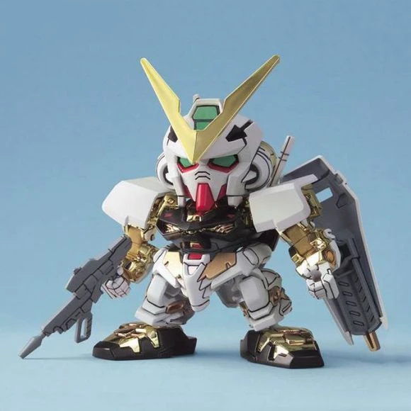 This fantastic little super-deformed version of Gundam Astray Gold Frame comes in colored and gold-plated plastic runners with polycaps for joints. It comes with all the weapon loadouts as seen in “Gundam Seed Astray.” With parts that snap together easily, Gundam Astray Gold Frame requires no cement or paint to complete, although paint would add a realistic appearance to the final product.